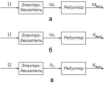 Для случая, приведенного на рисунке 2.1 в, уравнение движения электродвигателя определяется соотношением (2.3). Однако, принимая во внимание, что на выходном валу электродвигателя необходимо получить угол поворота, связанный с частотой вращения соотношением