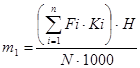 где m1 – сменная мощность проектируемого гормолзавода или цеха цельномолочных продуктов, т в смену; Н – численность населения на перспективу, чел.; Fi – рекомендуемая норма потребления i-го цельномолочного продукта на одного человека, кг в год (таблица Б.1); Кi – коэффициент пересчета продуктов на молоко (таблица Б.2); n – количество наименований продуктов; N –количество смен работы в год (таблица Б.3). Численность населения (Н) зоны обслуживания проектируемым заводом на перспективу определяют по формуле: