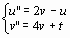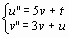Задание 2. Построить графики решений, полученных методами Эйлера, Рунге-Кутта, Адамса и с помощью функции rkfixed. Вычислить в точке х = 1 относительную погрешность для каждого метода. Задание 3. Найти аналитическое (точное) решение ОДУ из задания 1 с помощью преобразований Лапласа (команды Symbolic Transforms Laplaсе Transform и Inverse Laplace Transform). Задание 4. Решить задачу Коши для системы ОДУ при заданных начальных условиях на отрезке [0, 2] c шагом h = 0.2. Решать с помощью функции rkfixed. Построить графики функций u(t) и v(t). Варианты задания 4
