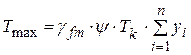 где 1,08 – коэффициент, учитывающий вес подкрановой балки; gfm = 1,1 – коэффициент надежности по предельному значению крановой нагрузки для срока службы здания 50 лет; y – коэффициент сочетаний, равен: при учете двух кранов с режимами работы 1К...6К y =0,85, с режимами работы 7К...8К y =0,95; yi – ордината линии влияния опорной реакции колонны; n – число колес всех кранов, передающих нагрузку на рассматриваемую колонну (которые помещаются в шагах, примыкающих к раме); Fi ,max – наибольшее нормативное вертикальное давление одного колеса крана на той стороне, к которой приближена тележка с грузом; обычно приводится в стандартах на краны; при одинаковом давлении на все колеса Fi ,max = F max (см. табл. П1):