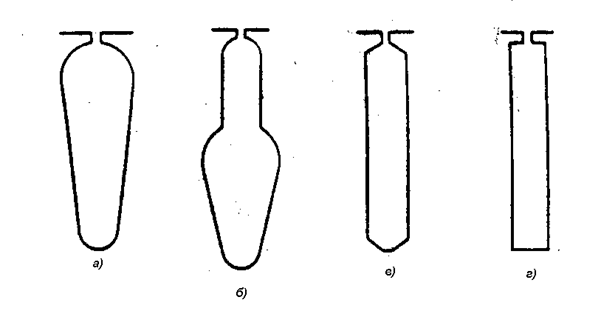 Одновременно с заливкой стержней и колец на замыкающих кольцах отливают вентиляционные лопатки длиной, несколько меньшей, чем длина вылета лобовых частей обмотки статора. Количество вентиляционных лопаток выбирают равным простому числу, приблизительно в 2—3 раза меньшему, чем число пазов ротора. Расчетное сечение замыкающих колец литой обмотки, м2, принимают равным Форма паза и конструкция обмотки короткозамкнутого ротора определяются требованиями к пусковым характеристикам двигателя и его мощностью. В асинхронных двигателях мощностью до 50...60 кВт обычно выполняют грушевидные пазы и литую обмотку из алюминия (рис. 6.1, а). Размеры паза выбирают такими, чтобы зубцы ротора имели параллельные грани. Роторы более крупных машин с прямоугольными пазами выполняют со вставными медными стержнями или с литой алюминиевой обмоткой (рис. 6.1, в, г). Прямоугольные открытые пазы встречаются в короткозамкнутых роторах многополюсных асинхронных двигателей. Лопаточные стержни (рис. 6.1, б), выполняют заливкой алюминием или его сплавами.