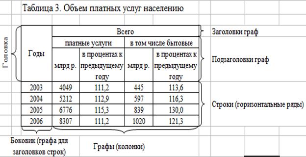 4.4.8.4. В тексте дипломного проекта (работы) не допускается: · применение оборотов разговорной речи; · применение для одного и того же понятия различных научно-технических и экономических терминов, близких по смыслу (синонимы), а также иностранных слов и терминов при наличии равнозначных слов и терминов в языке написания дипломного проекта (работы); · применение произвольного словообразования и сокращения слов, кроме установленных правилами орфографии и соответствующими стандартами; · применение без числовых значений математических знаков, например: > (больше), < (меньше), = (равно), ≥ (больше или равно), ≤ (меньше или равно), ≠ (не равно), ≈ (примерно), % (процент) и др. Ссылку на ГОСТы допускается выполнять только записью номера ГОСТа (СТБ РБ) без указания названия стандарта и года его утверждения при условии приведения этих данных в списке используемых источников. 4.4.8.5. Представление информации в виде таблиц. Таблица является формой унифицированного текста, который обладает большой информационной емкостью, наглядностью, позволяет строго классифицировать и кодировать информацию. Для расчетов желательно использование стандартных пакетов прикладных вычислительных программ (1С Предприятие, 1С Бухгалтерия, стандартные приложения Windows и др.). Каждая представленная в тексте таблица должна иметь номер и название, их следует помещать над таблицей. Таблицы нумеруют арабскими цифрами, в конце номера должна быть точка. Нумерация таблиц может быть сквозной по всему тексту дипломного проекта (работы) или в пределах раздела, например: "Таблица 5." (пятая таблица дипломного проекта (работы)) или "Таблица 2.3." (третья таблица второго раздела дипломного проекта (работы)). На все таблицы должны быть ссылки в тексте, например: " Результаты расчета представлены в табл. 1.1. ", "(см. табл. 1.2) " или "(табл. 1.3) ". Если в дипломном проекте (работе) одна таблица, то ее не нумеруют, хотя в тексте дают на нее ссылку. После номера таблицы следует название, которое должно отражать ее содержание, быть лаконичным, точным и кратким. В конце заголовка таблицы точка не ставится. Таблицу, в зависимости от ее размера, помещают под текстом, в котором впервые приведена на нее ссылка, или на следующей странице, а при необходимости – в приложении к работе. Допускается размещать таблицу на листе формата А4, развернутом в виде альбомной ориентации. При этом заглавие таблицы размещается со стороны переплета. Таблицу слева, справа, сверху и снизу ограничивают линиями. Горизонтальные и вертикальные линии, разграничивающие строки и графы таблицы, допускается не проводить, если их отсутствие не затрудняет пользование таблицей. Однако последнее не распространяется на головку (шапку) таблицы, где разграничивающие линии должны быть в обязательном порядке. Заголовки и подзаголовки граф, как правило, записывают параллельно строкам таблицы. При необходимости допускается иное (перпендикулярное или под углом в 45°) расположение заголовков и подзаголовков таблицы. Высота строк таблицы должна быть не менее 8 мм. Пример построения таблицы: