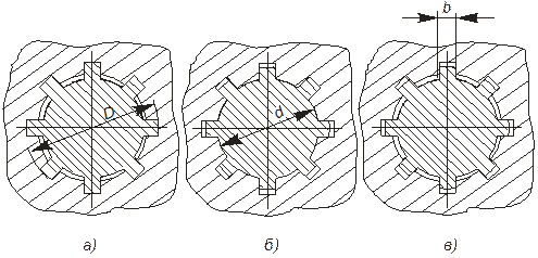 Рис. 26. Центрирование в прямобочных шлицевых соединениях