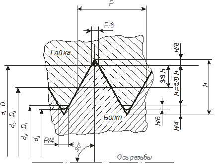 Резьбовым соединением по ГОСТ 11708-82 «Основные нормы взаимозаменяемости. Резьба. Термины и определения» называется соединение двух деталей с помощью резьбы, в которой одна из деталей имеет наружную резьбу, а другая – внутреннюю. Резьбовые соединения являются одним из самых распространенных видов соединений. В машиностроении около 80 % деталей либо имеют резьбовые поверхности, либо их крепление осуществляется с помощью резьбовых изделий. Основными достоинствами резьбовых соединений являются сравнительно легкая сборка-разборка и высокий уровень взаимозаменяемости изделий. К недостаткам резьбовых соединений можно отнести усложнение конструкции и технологии (обработка резьбовых поверхностей требует применения специального оборудования и инструмента, усложняется контроль деталей). В зависимости от формы профиля резьбы делятся на: · метрические (с треугольным профилем, исходным для которого является равносторонний треугольник с углом при вершине 60°); · дюймовые (с симметричным треугольным профилем и углом при вершине 55°), применяемые обычно для труб, трубные; · прямоугольные (с прямоугольным профилем); · трапецеидальные (с симметричным трапецеидальным про-филем); · упорные (с несимметричным трапецеидальным профилем); · круглые (с профилем, образованным дугами). Кроме того, разработаны резьбы, предназначенные для деталей из определенных материалов, например, для деталей из пластмасс, для керамических деталей, специальные резьбы для конкретных видов изделий, например, окулярные резьбы и др. По функциональному назначению следует различать резьбовые соединения делительные («отсчетные») и силовые. Пер-вые предназначены для обеспечения высокой точности линейных и угловых перемещений в измерительных приборах и технологическом оборудовании. Так, в микрометрических при-борах основной измерительный преобразователь – микрометрическая пара винт – гайка, в делительных машинах также основным механизмом является пара винт – гайка. Силовые резьбовые соединения предназначены для создания значительных сил при перемещении деталей (винтовые прессы, домкраты) или для предотвращения взаимного перемещения соединенных деталей (соединения крышка – корпус, резьбовые соединения деталей трубопроводов, крепление втул-ки на валу и др.). Деление резьбовых соединений на «отсчетные» и силовые условно и осуществляется исходя из основной функции механизма. В зависимости от характера функционирования различают неподвижные (крепежные) и подвижные (кинематические) резьбовые соединения. Подвижные резьбовые соединения образуются благодаря применению посадок с зазором. В неподвижных соединениях можно использовать все виды посадок – с натягом, переходные и с зазором. Для того чтобы обеспечить неподвижность резьбового соединения при посадке с зазором, используют искусственные методы его выборки (вплоть до создания натягов в соединении) либо применяют дополнительные конструктивные элементы, предохраняющие детали от самоотвинчивания (стопорные шайбы, контргайки, проволочные замки, герметики и др.). Из этого следует, что в неподвижных резьбовых соединениях, полученных применением посадки с зазором, после окончательной сборки возможны натяги по рабочим сторонам профиля резьбы при сохранении зазоров по противоположным сторонам профиля.