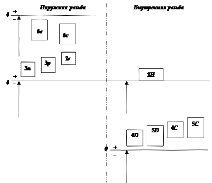 Рис. 34. Поля допусков резьб для соединений с переходными посадками