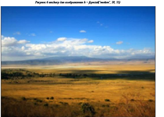 Программа для изображения h = ones(7,7)/49и h = fspecial(‘motion’, 20, 35): >>I = imread('imgunsp77.jpg'); / I = imread('imgmot.jpg'); >>Irg = rgb2gray(I); >>c = [150 500 500 150]; >>r = [150 150 500 500]; > >BW = roipoly(Irg,c,r); >>H = fspecial('unsharp'); >>J = roifilt2(H,Irg,BW); >>imshow(Irg)