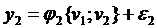 Зависимость (69) не отражает причинно-следственную связь. Она связывает между собой две равнозначные с точки зрения причинно-следственной связи переменные. Возникает резонный вопрос, а может ли быть связь между такими переменными для нашего объекта и зачем она нужна? Поскольку v 1 и v 2 одновременно влияют на y 1 и y 2, то можно предположить с большой степенью достоверности, что такая связь существует. Такое же право на существование имеет следующая зависимость: