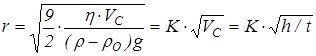 Визначивши швидкість осідання частинок Vc = h/t, за рівнянням Стокса, легко розрахувати радіус r частинок дисперсної фази: