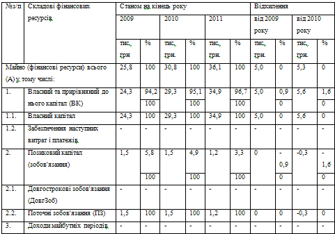 Таблиця 2.2. Аналіз динаміки та структури фінансових ресурсів ПП "Олександра" у 2009-2011 роках