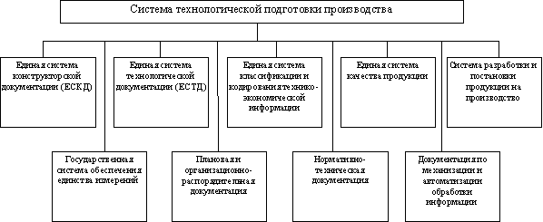 Рис. 1. Состав документации по методам и средствам ТПП Основное назначение ЕСТПП согласно ГОСТ 14.001–73* заключается в создании системы организации и управления процессом ТПП. Порядок формирования и применения документации на методы и средства ТПП определяется отраслевыми стандартами, стандартами предприятий и документацией различного назначения, разработанной в соответствии со стандартами ЕСТПП. Главная особенность ЕСТПП заключается в том, что основанная на твердой нормативной базе — стандартизации—эта система обеспечивает высокую мобильность промышленности, которая оперативно при высоких производственно-технических показателях может быть переключена на выпуск требуемой номенклатуры изделий, обеспечивая тем самым возможность непрерывного совершенствования действующего производства путем планомерного внедрения новейших достижений науки и техники. Из вышеизложенного следует, что система управления производством зависит от отрасли и масштаба производства, а также, что внедрение ЕСТД обеспечивает рациональную организацию технологических работ.