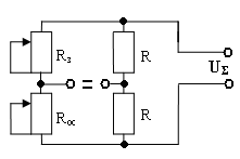 Wос(p) = Kос, (5) где Кос согласно варианта задания берется из таблицы №3. Регуляторы на функциональных схемах включают в себя: сумматор- усилитель, будущее корректирующее устройство и преобразователь для регулирования подводимого к ДПТ напряжения постоянного тока. В качестве сумматора - усилителя целесообразно для большинства схем применение измерительных мостов Рис.13. Возможно использование сумматора - усилителя на базе операционного усилителя. На схеме Рис.13 имеется задающий потенциометр Rз и потенциометр Rос датчика обратной связи. Структурная схема такого устройства принимается в виде, представленном на Рис.14.