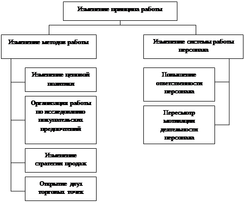 Рисунок 2.5 - Варианты решения поставленной проблемы Согласно приведенного алгоритма выбора и принятия управленческого решения проблемы повышения эффективности деятельности ООО «ЦП и НТ «Пирант» были выбраны и оценены как наиболее отвечающие поставленным целям и задачам, следующие решения: - принять как основную в системе мотивации деятельности персонала программу материальной заинтересованности персонала в повышении объемов продаж и премирования по результатам деятельности фирмы за каждый квартал; - скорректировать ценовую политику; - провести исследование рынка и покупательских предпочтений, после чего разработать и скорректировать ассортимент в соответствии с результатами исследований; - организовать еще два филиала продаж в точках где, по результатам маркетинговых исследований имеется большой и долговременный спрос на реализуемую продукцию. Количественная оценка эффекта, полученного в результате принятия того или иного решения, выражается не только в денежной форме, но и зависит от изменений в составе капитальных вложений, социальных условий труда, психологического климата и т.д. Сопоставление вариантов предусматривает исключение непригодных и выбор наиболее приемлемых. В наиболее общем виде выбор окончательного решения определяется характером поставленной задачи, имеющимися ресурсами, информационной обеспеченностью процесса управления. Из предложенных способов решения проблемы изменение ценовой политики не представляется возможным, т.к. данный рынок самостоятельно регулирует уровень цен на основании спроса и предложения. Сравнивая оставшиеся три варианта, с учетом дороговизны исследований рынка и неоднозначности возможных результатов был сделан выбор в пользу активизации человеческих ресурсов и внедрении системы мотивации, а также организацию двух филиалов продаж, где имеется большой спрос на реализуемую продукцию. Следует помнить, что решение будет реализуемым, если оно предусматривает: - организацию; - стимулирование (мотивацию); - контроль выполнения. Организация выполнения решения может включать два аспекта. Во-первых, это организация новой системы при решении крупной новой проблемы. В этом случае может использоваться метод функционально-логического проектирования структур организационных систем. Во-вторых, это изменение функций, структуры, параметров уже существующей системы. В частности, важно избежать в организационно-производственной системе линейно-функционального конфликта, при перераспределении функций подразделений, их специализации и, соответственно, власти, ответственности, ролей отдельных менеджеров в организационно-производственной системе, со всеми вытекающим отсюда последствиями. Стимулирование исполнения решения тоже может быть двояким: - общеорганизационным; - целевым. Общеорганизационным стимулированием называют стимулирование, обеспечиваемое фактом работы в данной организации на данной должности, с соответствующими ей материальным вознаграждением, социальным статусом, возможностью к самореализации. Угроза потери должности может обеспечивать выполнение решения до тех пор, пока соответствующие этой должности факторы здоровья (загрузка, вознаграждение, безопасность и т.п.) находятся в приемлемом для данной категории менеджеров диапазоне. При выходе 