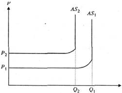 Рис. 1.2. Инфляция издержек На рис. 1.2 видно, что стоимостное увеличение совокупных издержек производства ведет к сдвигу кривой AS2 в положение AS1. В данном случае цены растут с Р1 до Р2, а реальный объем производства сокращается с Q1 до Q2. Рост цен ухудшает жизненный уровень населения, поэтому профсоюзы требуют повышения заработной платы, а государство начинает проводить политику социальной защиты населения от последствий инфляции путем компенсации и индексации их доходов. Рост номинальных доходов увеличивает издержки, что ведет к новому витку цен и требует дальнейшего повышения доходов населения. Date: 2015-07-25; view: 335; Нарушение авторских прав |