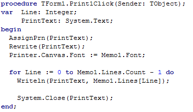 С помощью процедуры Print1Click производится отправка файла на печать.