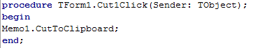 С помощью процедуры Cut1Click вы можете вырезать выделенный текст.