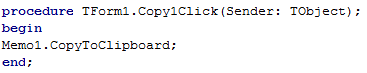 С помощью процедуры Copy1Click производится копирование выделенного текста.