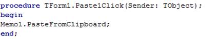 С помощью процедуры Paste1Clikc производится вставка ранее скопированного текста.