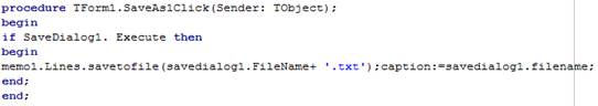 С помощью процедуры SaveAs1Click производится сохранение файла в выбранную вами директорию с выбранным расширением.