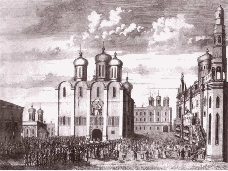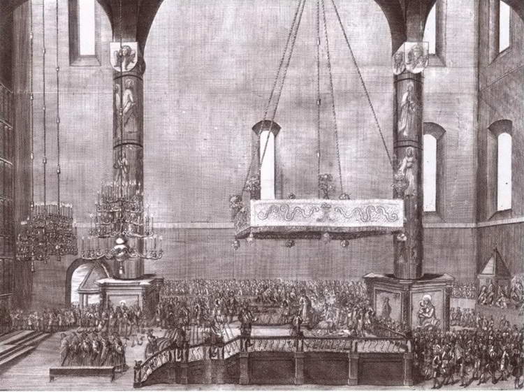 Церемония коронации императрицы Анны Иоанновны 28 апреля 1730 года в Московском Кремле. Гравюры X. Вортмана по оригиналам Л. Каравака. 17