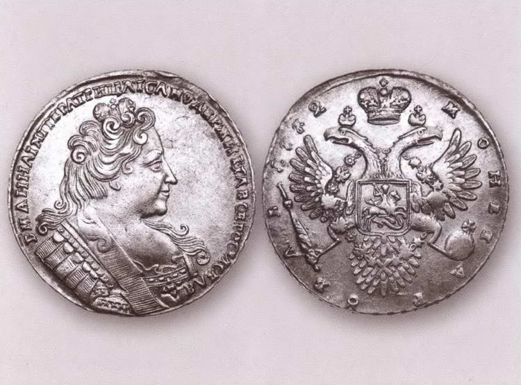 По профилям на серебряных монетах видно, как менялись прически, украшения и фасоны одежды императрицы. Вверху — рубль 1732 года, внизу — рубль 1739 года