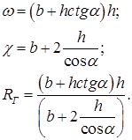 Трубкою течії називають трубчасту поверхню, яка утворена лініями течії, що проходять через всі точки нескінченно малого замкнутого контуру. (рис.3.2). Частина рідини, що рухається всередині трубки течії, називається елементарною струминкою. Властивості елементарної струминки при усталеному русі рідини. 1. Так як лінії течії при усталеному русі не змінюють своєї форми з часом, то, і струминка буде незмінною в часі. 2. Оскільки бокова поверхня струминки утворена лініями течії, то проникання рідини через цю поверхню неможливо. 3. Внаслідок малості площини поперечного перерізу елементарної струминки швидкість u і тиск р для всіх точок даного перерізу можна вважати однаковими. Потоком рідини називають сукупність елементарних струминок. Русло потоку – поверхня, яка обмежує потік по всій його довжині. Потоки, що мають вільну поверхню, називають безнапірними потоки, які обмежені з усіх боків твердими стінками, називають напірними. Живим перерізом (або перерізом) потоку називається в загальному випадку поверхня в межах потоку, перпендикулярна до всіх елементарних струминок. Довжина лінії, по якій рідина в живому перерізі стикається з твердими стінками русла, називається змоченим периметром і позначається χ. Відношення площі живого перерізу ω до довжини змоченого периметра називають гідравлічним радіусом RГ (рис.3.3):