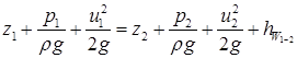 Коефіцієнт α, що входить до рівняння Бернуллі, називають коефіцієнтом кінематичної енергії або коефіцієнтом Коріоліса. Він враховує нерівномірність розподілу швидкостей в перерізі потоку і фактично є відношенням дійсної кінетичної енергії потоку в даному живому перерізі до кінетичної енергії, обчисленої за середньою швидкістю потоку. Величина коефіцієнта α в залежності від характеру течії рідини змінюється в межах від 1,04…1,12 до 2. Складова рівняння Запишемо рівняння Бернуллі (3.14) в такій формі: