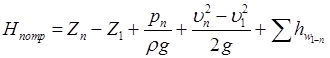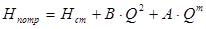 При турбулентному режимі коли m=2, другий і третій члени правої частини рівняння (6.9) об’єднують, а при ламінарному режимі другим членом як правило нехтують. Крива потрібного напору З наведених вище формул виходить, що потрібний напір – це той напір, який необхідно створити на початку трубопроводу для долання геометричної висоти