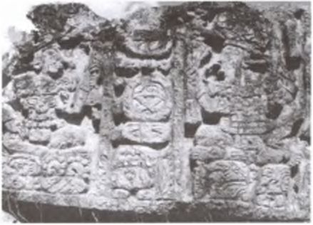 Конец династического правления в Копане. Единственное сохранившееся изображение на Алтаре L. Слева – фигура последнего правителя Копана Йаш‑Пака. Справа изображен человек по имени У‑Сит‑Ток, безуспешно пытающийся подхватить упавшую династическую эстафетную палочку
