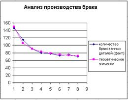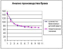 Рис. 2.20. График фактических значений количества брака и кривая роста