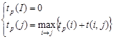 К основным параметрам сетевого графика относятся продолжительность выполнения всего проекта (критический срок), сроки свершения и резервы времени событий, сроки выполнения отдельных работ и их резервы времени. Полный путь в сетевом графике – это цепочка следующих друг за другом работ, соединяющих исходное и завершающее событие. Продолжительность пути равна сумме длительностей принадлежащих ему работ. Критическим называется полный путь, имеющий наибольшую продолжительность во времени. Его продолжительность определяет критическое время (или критический срок) проекта tкр. Работы, принадлежащие критическому пути, называются критическими. Их несвоевременное выполнение ведет к срыву сроков всего проекта. Критических путей на сетевом графике может быть несколько. Критический срок, таким образом, показывает, за какое минимальное время может быть завершен весь проект. Очевидно, что увеличение сроков выполнения проекта больше tкр также невыгодно. Временные параметры событий являются основой для расчета параметров работ. Рассмотрим один из способов определения этих параметров, основанный на методе динамического программирования. Ранний срок свершения события – это самый ранний момент, к которому завершаются все работы, предшествующие этому событию.