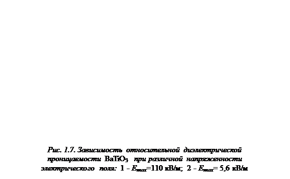 Зависимость диэлектрической проницаемости от температуры характеризуется наличием острого максимума при достижении температуры Кюри Т к (рис. 1.7).