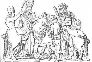 Скифы и согдийцы. Фрагмент рельефа из Персеполя