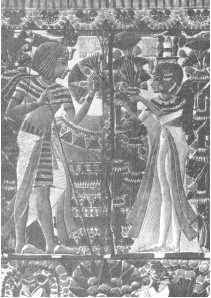 Генерал Хоремхеб получает в награду от Тутанхамона золотые ожерелья