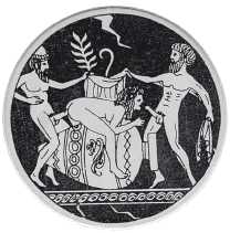 Гетера, несущая фаллос. Фрагмент древнегреческой вазы