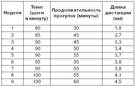 Каждый здоровый человек, не имеющий строгих противопоказаний к ходьбе, независимо от возраста легко сможет довести темп ходьбы до быстрого. Кстати, примерно час ходьбы в быстром темпе – это практически японская норма. А для выработки легкой и изящной походки специалисты рекомендуют выполнять упражнения, составленные из самых разных способов ходьбы: • обычная ходьба с махами руками и высоким подниманием коленей (в течение 30–60 секунд); • ходьба с махами руками на носках (30–60 секунд); • ходьба с руками на поясе на пятках (30–60 секунд); • ходьба в полуприседе, руки на поясе (в течение 30 секунд); • ходьба с высоким поднятием выпрямленных ног и махами руками (парадный шаг, 30 секунд); • ходьба в полуприседе, руки вытянуты перед грудью (в течение 30 секунд); • ходьба на прямых ногах перекрестным шагом, руки на поясе (в течение 30 секунд); • ходьба на прямых ногах перекрестным шагом, прямые руки подняты над головой (в течение 30 секунд); • ходьба боком на носках, руки на голове (в течение 30 секунд); • обычная ходьба (в течение 30 секунд); • ходьба по полоскам или намеченным следам с различным положением рук (в течение 30–60 секунд); • ходьба по узкой и широкой площади опоры (бревно, гимнастическая скамейка и пр.) и с различными вариантами движения ног и рук (прямо, боком, спиной; руки вытянуты в стороны, вперед, заложены за спину и т. п.; в течение 30–60 секунд). А теперь поговорим о беге. Большинство людей, которым необходимы аэробные нагрузки, выбирают бег только потому, что недалеко от дома практически всегда можно найти подходящее место – парк, сквер, дорогу с малым автомобильным движением и пр. Кроме того, многим известно, что у людей, регулярно занимающихся бегом трусцой, в самые кратчайшие сроки наблюдается целая серия положительных изменений в организме. Это касается как телосложения, так и здоровья. У бегунов заметно укрепляется сердечно-сосудистая, дыхательная и нервная система и развиваются самые разные группы мышц. Кроме того, бег трусцой даже на начальном этапе не требует ни особой физической подготовки, ни серьезных навыков. Разумеется, бег трусцой намного эффективнее ходьбы, но нетренированный человек, да еще обремененный лишним весом, долго заниматься просто не сможет: таким людям лучше начинать с ходьбы. А после того как физическая форма будет восстановлена, можно будет перейти на бег трусцой. Но и вполне здоровым людям не стоит сильно увлекаться длительными и быстрыми пробежками. На первых порах нужно чередовать бег и ходьбу, после чего, не увеличивая скорости передвижения, постепенно сократить время ходьбы. Не ранее чем через 3 недели таких занятий можно повысить скорость бега и сократить дистанции ходьбы до минимума. Если же в период занятий у вас наблюдается одышка, а в течение дня бывает упадок сил и сонливость, нагрузки следует уменьшить. Кстати, при беге трусцой не нужно копировать техники олимпийских чемпионов. Ноги нужно ставить на полную стопу, прямо, с последующим перенесением тяжести с пятки на носок.