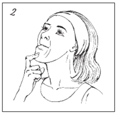 Эти упражнения развивают внутреннюю крыловидную мышцу челюсти, от которой зависит тонус кожи и мышц боковых поверхностей щек, позволяют «убрать» провисание кожи, деформирующее овал лица. 1. Исходное положение – сидя на стуле. Откройте рот и заверните внутрь нижнюю губу так, чтобы она удобно разместилась на нижних зубах. Уголки рта оттяните к коренным зубам и также плотно заверните их внутрь рта. Верхнюю губу плотно прижмите к зубам, указательный палец поместите на подбородок таким образом, чтобы оказывать губам легкое сопротивление. Открывайте и закрывайте рот черпающим медленным движением, используя уголки рта при закрытии и открытии челюсти. Представьте себе, как вы захватываете ртом любимое мороженое.