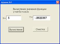 è Введите следующий код программы: Private Sub cmdRun_Click() Dim Х As Single Dim Y As Single Х=Val(txtArgument.Text) Y = Sin(5 * x) + Cos(3 * x) txtFunction.Text = Str(Y)