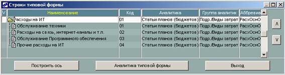 2.2. Нажмите экранную кнопку [ Построить ось ] для указания перечня статей. Клавишей Insert пометьте выбираемые статьи бюджета (Примечание – статьи будут перенесены в типовую форму в порядке их пометки во время выбора).