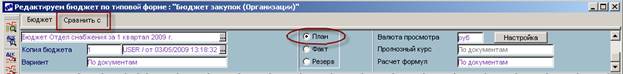 В режиме просмотра откройте закладку «Сравнить с» и выберете бюджет ЦО по варианту «по документам», регистр План.