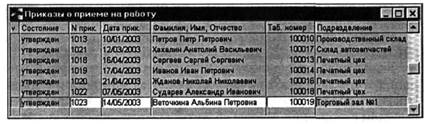 Рис. Б.13. Окно списка приказов о приеме на работу