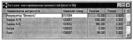 Рис. В.17. Фрагмент каталога материальных ценностей после покупки 10 аккумуляторов «Вечность»