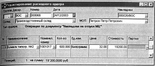 Рис. В.20. Окно Редактирование накладной на отпуск МЦ