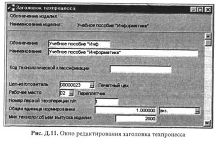 Выбираем из списка в правой панели (см. рис. Д. 13) Учебное пособие «Информатика» и, нажав клавишу [Enter], переходим в окно Описание технологического процесса (рис. Д. 14).