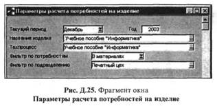 Эти окна содержат следующие поля с соответствующей информацией: • Код профессии и название - справочные нередактируемые поля; • Номер тарифной сетки - номер тарифной сетки по каталогу тарифных ставок (см. тему Б). Поле заполняется выбором из соответствующего каталога с помощью клавиши [F3]. Значение этого поля однозначно определяет нередактируемые поля Сист. опл. и Тарифный разряд; • Единица нормирования - количество исходного изделия, на которое задаются нормы; • Количество рабочих - количество специалистов данной профессии и разряда, необходимое для выполнения операции; • Условия труда - заполняется выбором из соответствующего каталога с помощью клавиши [F3]. Значения нередактируемых полей Норма времени на операцию (в часах) и Процент использования операции автоматически переносятся из окна Нормирование операции (см. рис. Д. 15). В нижних панелях окон (см. рис. Д.21-Д.23) представлены таблицы нормативов оплаты труда специалистов данной профессии, включающие следующие столбцы: Дата изменения - дата изменения тарифных ставок; Расценка - оплата труда за выполнение объема работы по данной техоперации специалистами данной профессии, равного Единице нормирования. По умолчанию эта величина равна произведению часовой тарифной ставки и значения поля Норма времени на операцию. Имеется возможность при необходимости, в частности, при сдельной системе оплаты труда ввести значение этого поля с клавиатуры; Множитель - множитель, корректирующий значение столбца Расценка для данной операции. 8. Для формирования отчетов по нормативам подаем команды ТЭП → Нормативы → Запросы. В появившемся окне (рис. Д.24) показан список отчетов по нормативам. Выберем отчет Потребности на одно изделие. Именно этот отчет позволит получить данные, необходимые для расчета плановой себестоимости (рис. Д.25).