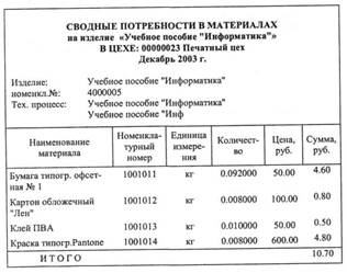 Приведенные в этих отчетах данные могут быть использованы для расчета плановой себестоимости готового изделия.