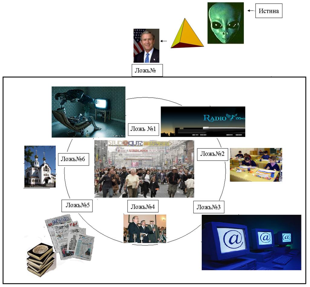Теперь посмотрите на рисунок выше. Ответьте на вопрос где на нем вы? Для тех кто не понял, поясню. Ложь№1 Образование. Ложь№2 Религия. Ложь№3 Интернет. Ложь№4 Телевизор, радио. Ложь№5 Книги, газеты. Ложь№6 Проповедники всякие разные.
