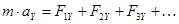 где – масса тела, – ускорение тела, , , и т.д. – действующие на тело силы ( ).