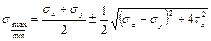 Жазық кернеулі күйде экстремалды жанама кернеулер келесі формуламен анықталады (