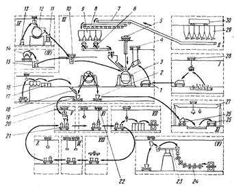 1 – скраповоз; 2 – самоходный шлаковоз; 3 – конвертер; 4 – загрузочная машина; 5 – для машина кислородной подачи; 6 – система весового дозирования; 7, 8 – наклонный и передвижной конвейеры; 9,16 – расходные бункера; 10 – заливочный кран; 11,15 – самоходные чугуновозы; 12 – стационарный миксер; 13 – чугуновозные ковши; 14 – предвижной миксер; 17 – камерные печи; 18 – разливочный канал; 19 – сталевоз; 20 - разливочный кран; 21 – состав с изложницами; 22 – стрипперный кран; 23 – стенд; 24 – МНЛЗ; 25 – думпкары; 26 – уборочный шлаковоз; 27 – кран; 28 – магнитогрейферный кран; 29 – приемный бункер; 30 – ж/д полувагоны. Date: 2015-07-25; view: 633; Нарушение авторских прав |