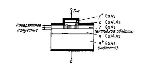 Рис 5.10. Структура гетеропереходного лазера на GaAs—GaAlAs